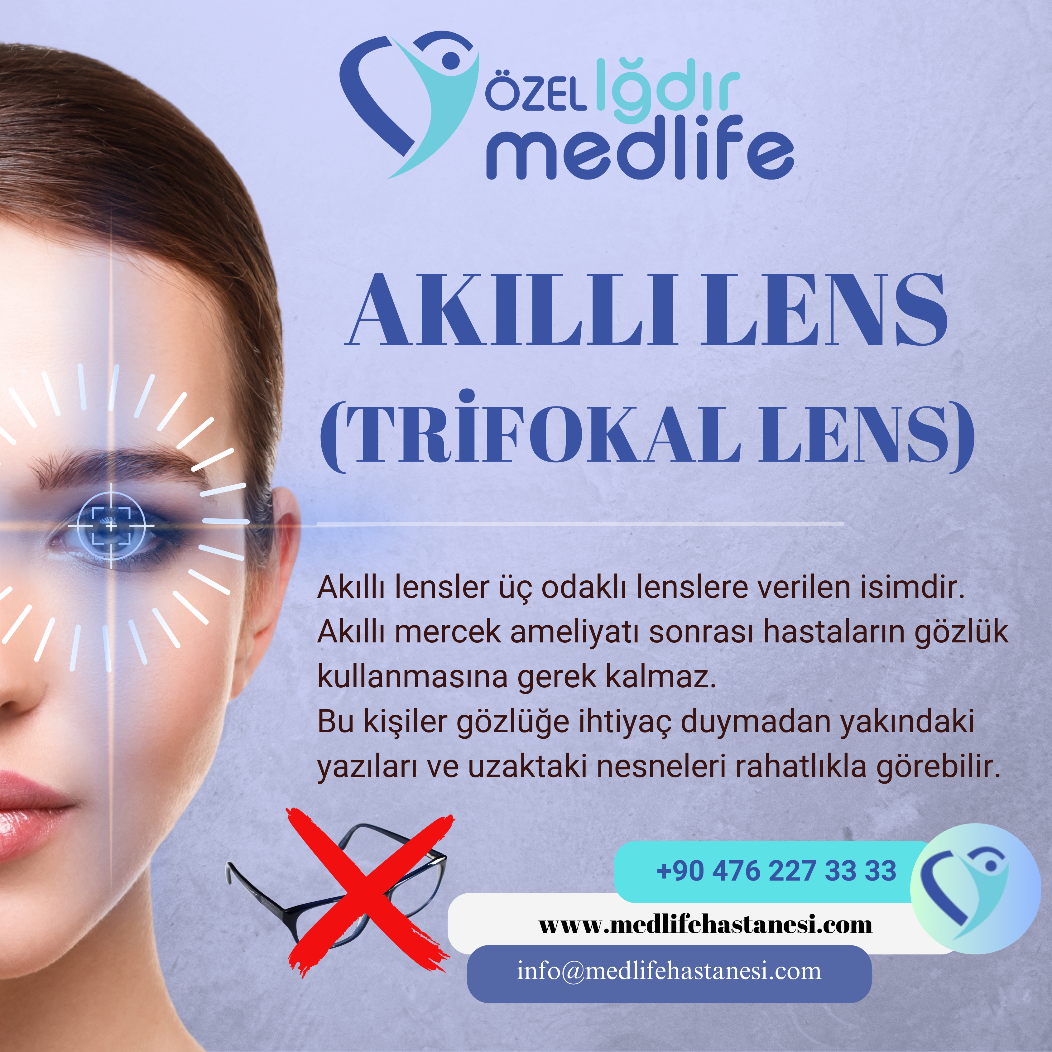 Akıllı lensler üç odaklı lenslere verilen isimdir.Akıllı mercek ameliyatı sonrası hastaların gözlük kullanmasına gerek kalmaz. Bu kişiler gözlüğe ihtiyaç duymadan yakındaki yazıları ve uzaktaki nesneleri rahatlıkla görebilir.